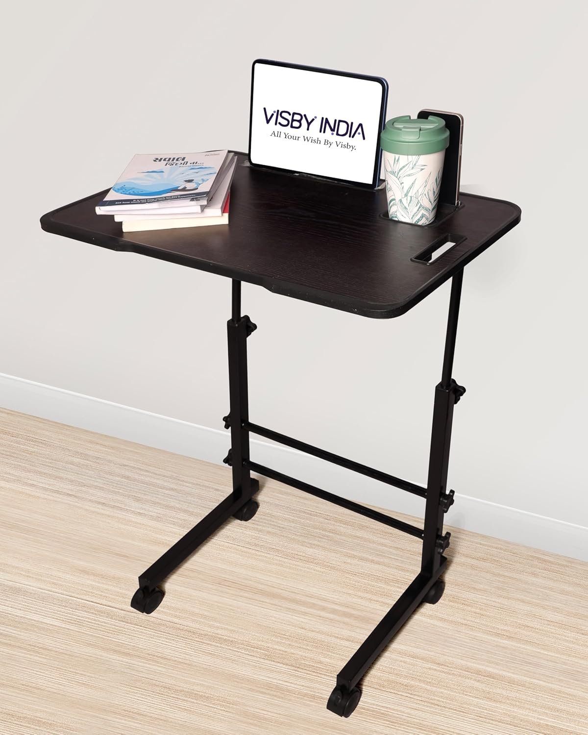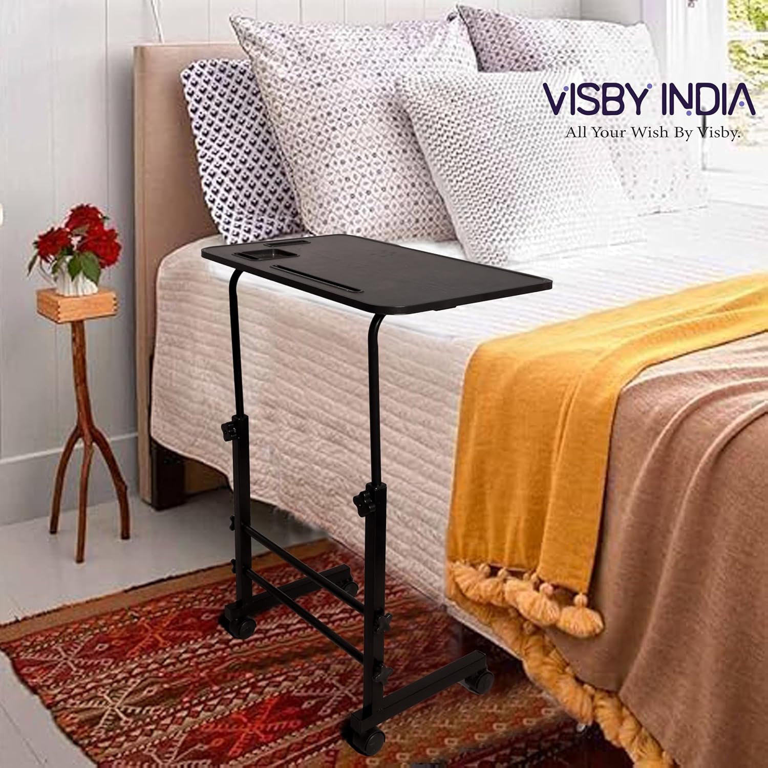 Easy Mobility and Stability: The Portable Wooden laptop desk comes with 4 high-quality wheels with a lock that makes the computer desk up desk move smoothly and stop wherever you want. The laptop table is equipped with smooth-rolling wheels that make it easy to move from one room to another.