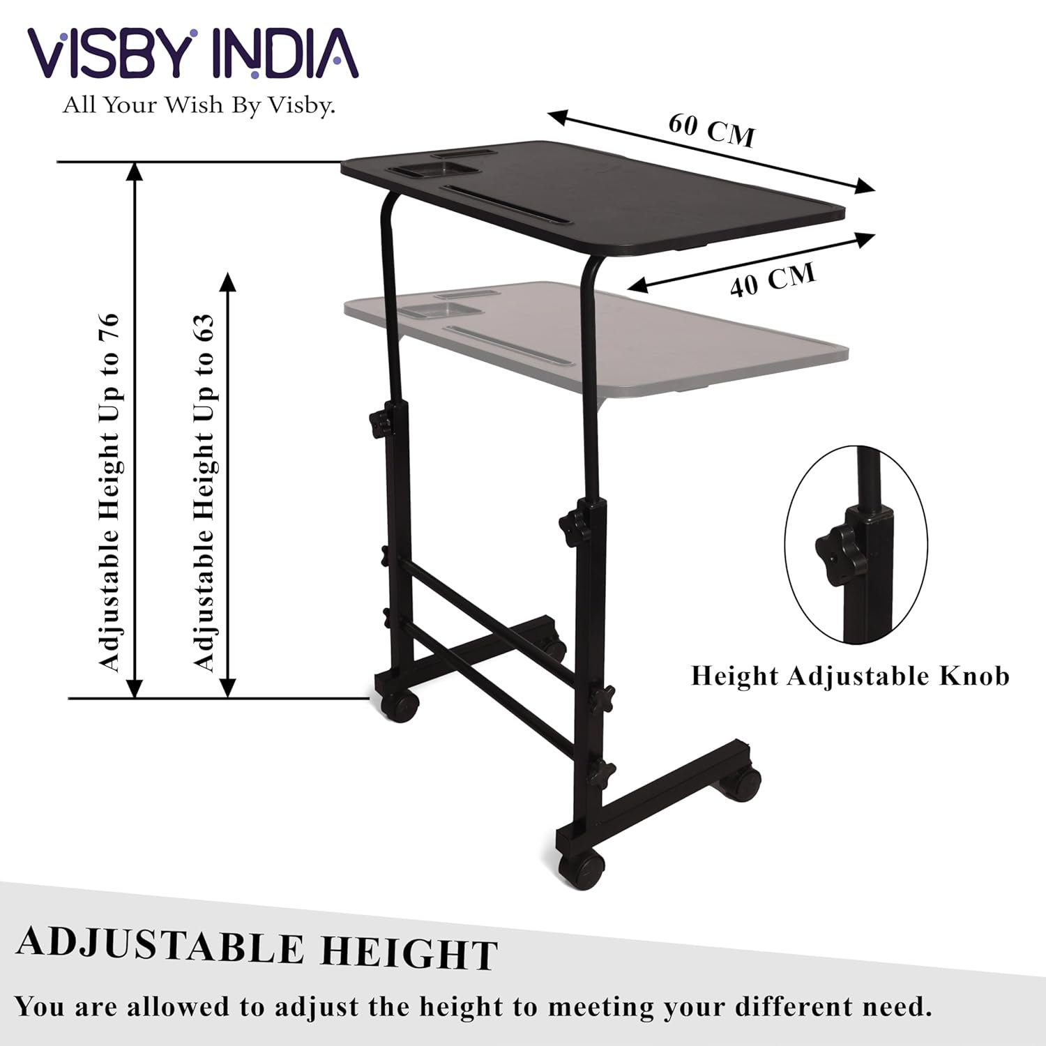 Height Adjustable Table: The utility Table is made from a high-quality steel frame sturdy wood surface. The height of the portable laptop table can be adjusted from 74 cm – 94 cm as you wish, to sit or stand. It has a 50 Kg weight capacity and keeps stabilization, large enough for any size of the computer.